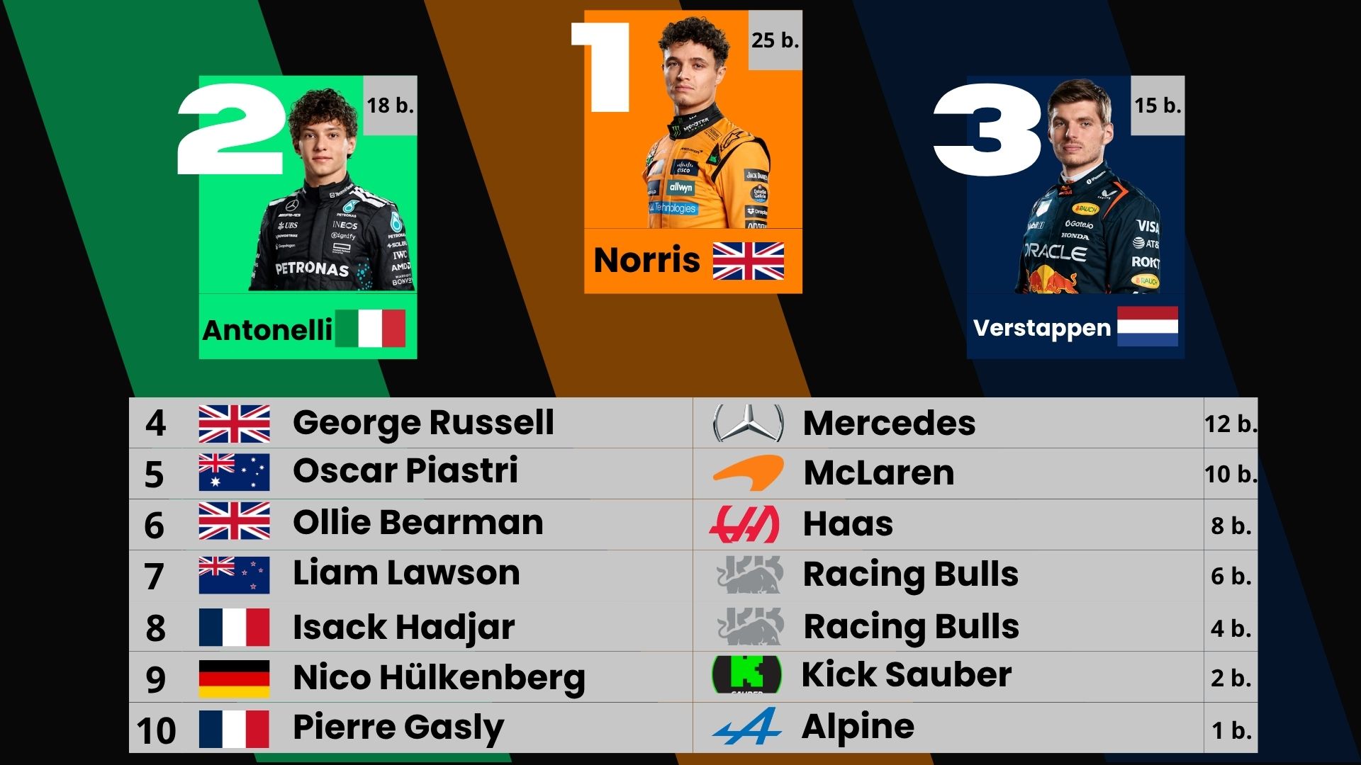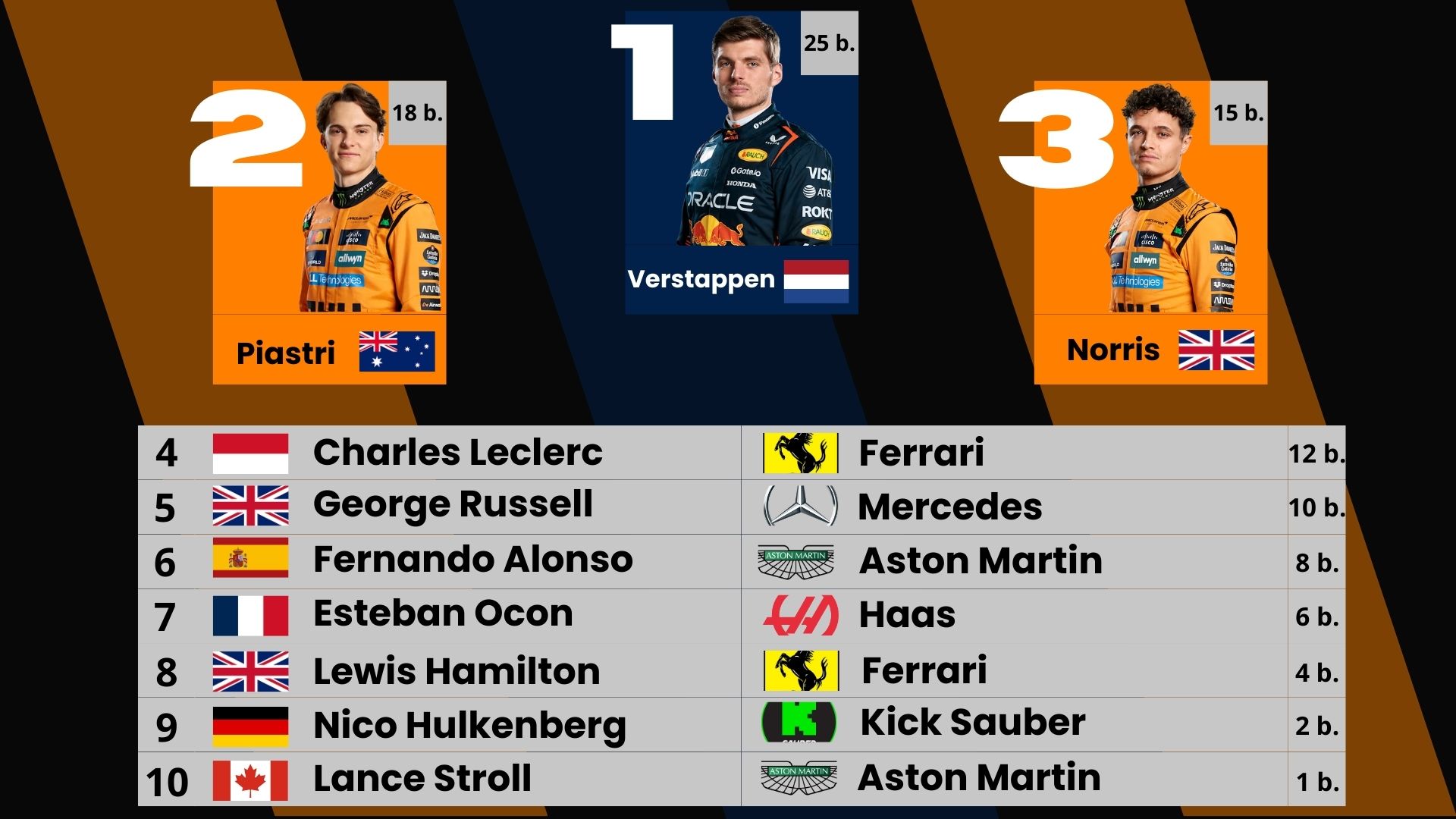 Výsledek: Norris 1., Piastri 5.